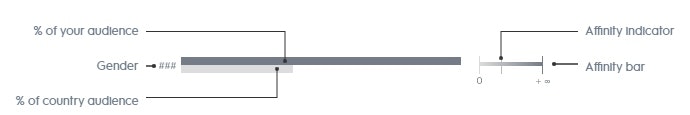 Based on your selected audience, Criteo calculates an Affinity Indicator for each of the segments available in Criteo’s dataset from within your country (Gender, Purchasing Power, Brand & Category).