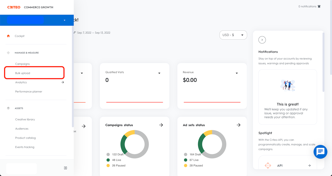 You have a large portfolio and find it cumbersome to navigate between advertisers to edit variables, such as bids and budgets.