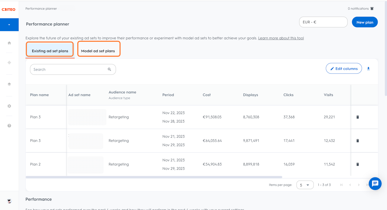 Performance planner helps you define and optimize your media plans. Here, you can save, compare and share multiple scenarios of the projected performance of your model and existing ad sets.