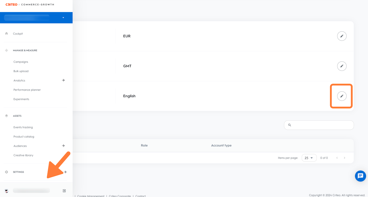 Click on the pencil icon to the right of the selected language.