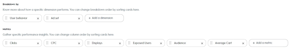 Access new insights on your campaigns and ad sets using the user behavior breakdowns in Custom report. Learn how your commerce marketing activities across acquisition and retention drive visitors and buyers.